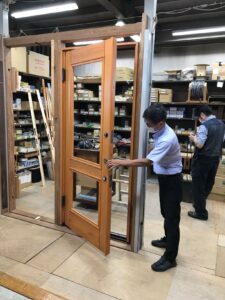 木製玄関ドアの組み立て工程を見る事ができ、