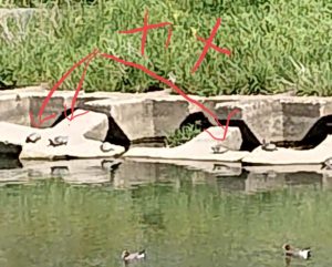 亀も甲羅干ししてました。