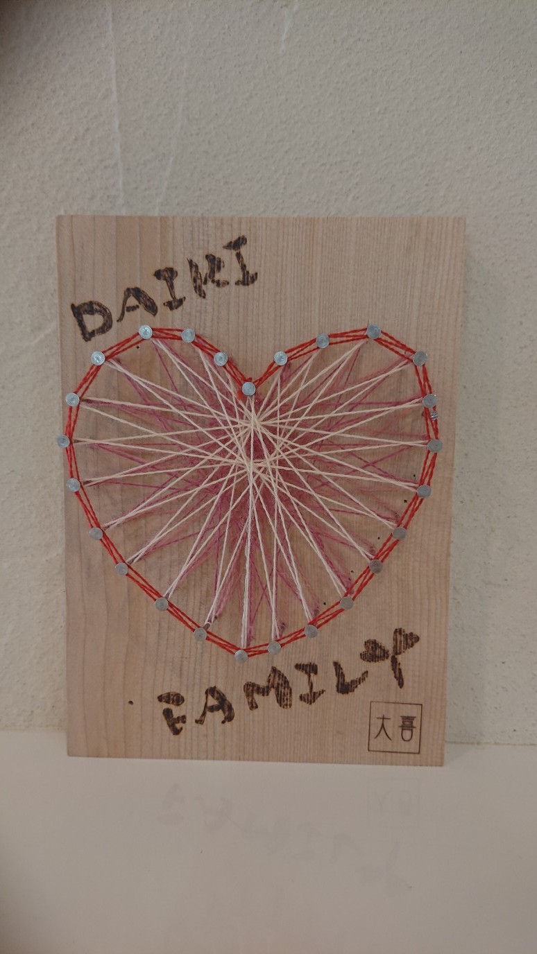 ホーム > 大喜ブログ >【ストリングアート】広島工務店ブログvol.531 ブログ BLOG 【ストリングアート】広島工務店ブログvol.531 【 大畑美和 】 投稿日:2019.09.4 一覧に戻る 大喜大感謝祭では、多くの方に手作りストリングアートを楽しんでいただきました。 その時の作品にウッドバーニングで文字をいれてみました。 by 大畑美和 user-daiki カレンダー <<前の月 2026年1月2025年12月2025年11月2025年10月2025年9月2025年8月 次の月>> 日月火水木金土12345678910111213141516171819202122232425262728293031日月火水木金土12345678910111213141516171819202122232425262728293031日月火水木金土123456789101112131415161718192021222324252627282930日月火水木金土12345678910111213141516171819202122232425262728293031日月火水木金土123456789101112131415161718192021222324252627282930日月火水木金土12345678910111213141516171819202122232425262728293031 最近のエントリ 最近のエントリ 01/24 【金毘羅山参り】広島工務店ブログvol.1687 01/22 【構造用合板のコト】広島工務店ブログvol.1686 01/19 【あんぱん】広島工務店ブログvol.1685 01/18 【木造住宅 耐震調査】広島工務店ブログvol.1684 01/17 【YouTube更新】エアコン1台で家中快適!職人技が光る造作キッチンと、こだわり抜いた「釣り動線」を巡るルームツアー カテゴリー ブログ(1,905) ・岡本拓也(15) ・越智彩愛(11) ・竹吉朗(7) ・竹本明子(149) ・山﨑昂篤(5) ・柿田浩子(225) ・柿田大輔(346) ・柿田勝司(309) ・細澤良(61) ・平田政貴(71) ・吉岡靖(76) ・藤田豊(70) ・野村崇(44) ・溝上暁大(69) ・大畑美和(45) ・熊本由美子(56) ・大喜ブログ(1327) ・スタッフブログ(639) ・お知らせ(44) ・未分類(114) ブログアーカイブ ・2026年1月 (12) ・2025年12月 (11) ・2025年11月 (11) ・2025年10月 (10) ・2025年9月 (7) ・2025年8月 (14)