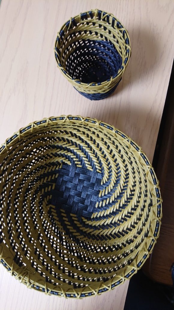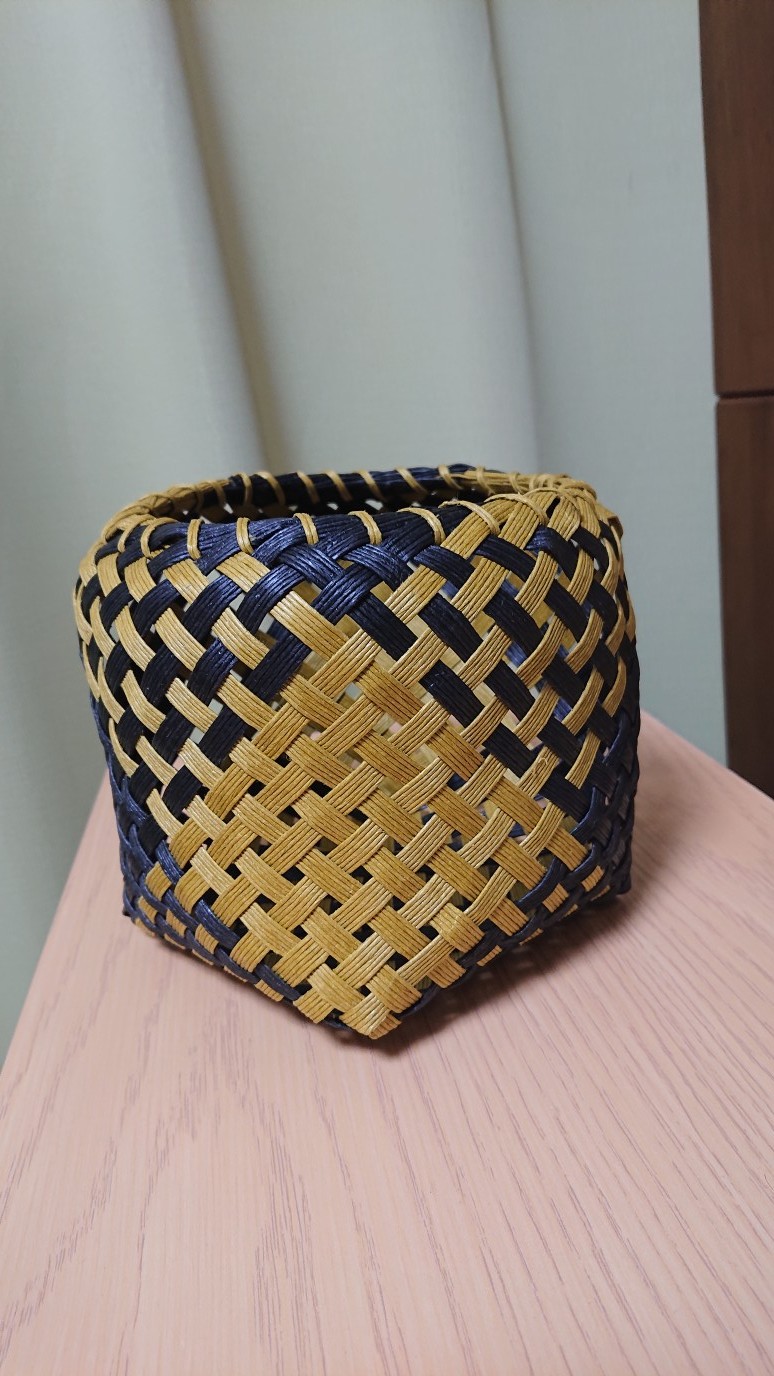 最近、100均のクラフトバンドで籠作りにはまってます。