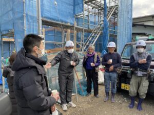 朝礼で施主様の挨拶からスタート。