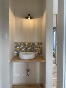 水回りにアクセントタイルを設えた
