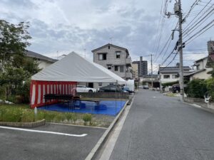 テントや紅白幕の運搬、設営で朝から汗かきました!