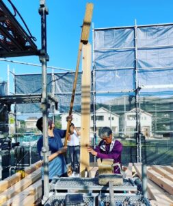 残暑の中でしたが絶好の上棟日和☀️