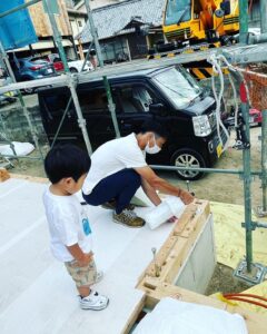 子どもの頃見ていた自宅の上棟風景を思い出し、今度はご自身の手で柱打ちをすることに✨