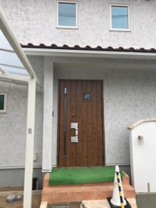 玄関の木質ドアが良いアクセントなっています。