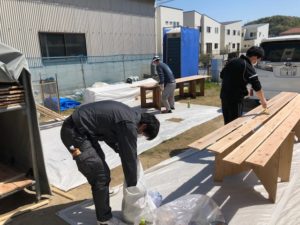 東広島市T様 杉床材にリボス社クノス白木のオイルを塗って頂きました