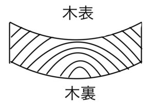そのため、連続して木材を使う場合この木表・木裏の方向をあわせておかないと反れる方向がバラバラになってしまいます。