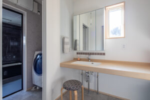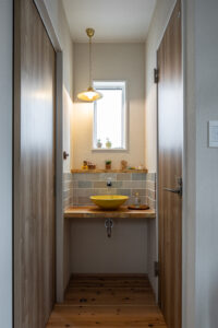 カウンターは栃の木の無垢カウンターをご採用! 洗面上はFIX窓の型板ガラスにし、明るい洗面コーナーになりました! さらにさらに、暮らしに合わせた造作洗面実例を一気にご紹介!