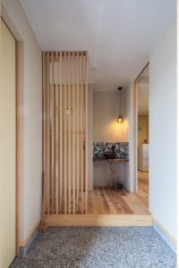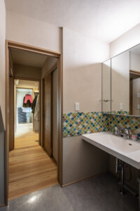 こんにちは。 柿田大輔です。 昨日は書斎について書きましたが、引き続き実例紹介ということで 本日は造作洗面の実例について書いていこうと思います! 造作洗面の良さは、好きな水栓・好きなボウル・好きなカウンター・好きな照明 などなどこだわりを詰め込めること! 色々な実例をご紹介します! まずは大喜の川内モデルハウスにある玄関造作洗面名古屋モザイクの「コラベル」というタイルを壁にあしらいました。 カウンターは柿の木の板をカットして使っています! コラベルは空間を一気に華やかにしてくれるのでいいですよねーー!