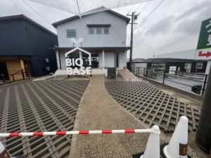 こんにちは。 柿田大輔です。 オープンまであと1ヶ月ほどとなったBIOBASE。 外構が少しずつ完成してきました。建物右手側はスロープで上がれるようにします。 あと1週間ほどで完成する予定です! 駐車場スペースは緑化ブロックを使って、緑豊かにします。 完成したらまたブログで取り上げますね~!
