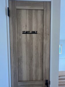 こんにちは。 柿田大輔です。 先日は、BIOBASEのトイレサインをレーザーカッターで作成したのですが 今回は、ドアの「STAFFONLY」サインをレーザーカッターで作ってみました! PCでデザインをし、レーザーカッターでカットします。 ベニヤ板で形を作り、ブラックの塗装を行いました。![]()