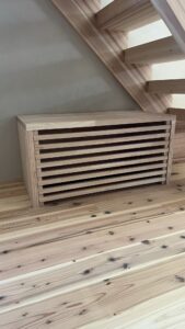 こんにちは。 柿田大輔です。 本日は床下エアコン台のご紹介です。こちらの造作ボックスの中に床下エアコンが隠れています。 手前のガラリは磁石でくっついているのでカンタンに取り外しすることができます。 床下エアコンは、造作テレビボードの中に入れる、収納の中にボックスを作る、造作ボックスを作る など色々な置き方があります。 お家それぞれで効率がいい置き場所は異なります。 各お家効率がいい場所をご提案させていただきます!