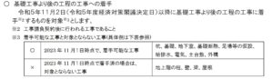 11月1日までに、地上階の柱・壁・屋根の工事をしていたら対象外となります。