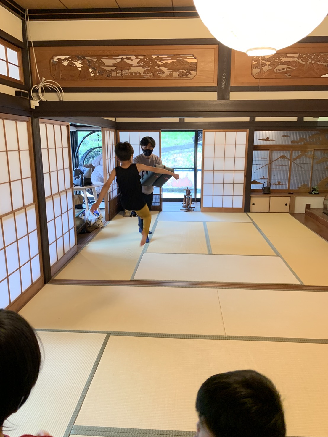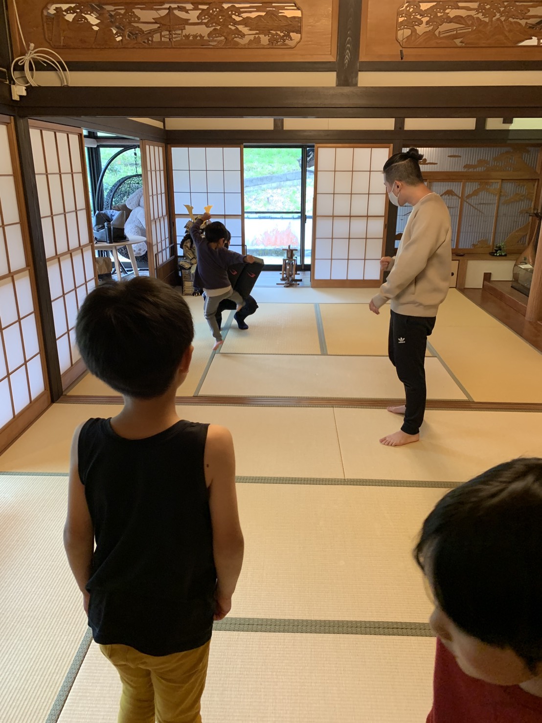 エクササイズ後は少し休憩た後すぐにみんなで外に出て虫取りをしていました。無限の体力がうらやましい。