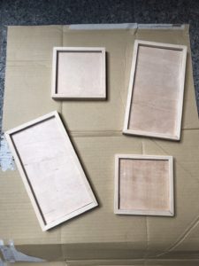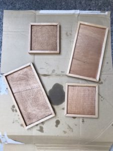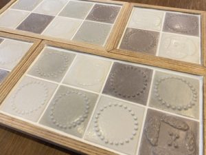 余ったタイルを使ってDIYしてみました! 大人気ミナペルホネンのタンバリンタイルで、洗面所などで使えるトレイを作ってみました! 不器用なので、木枠は藤田課長にお願いして、、、枠を塗装して。