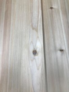 杉や桧は板材にすると節(枝があった部分)が出てきたりします。