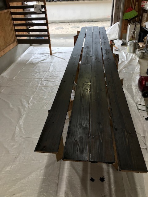 自宅に使用する床材を塗装していました。