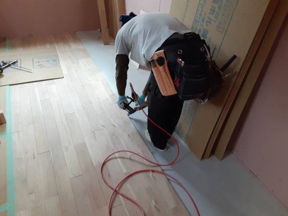 ホーム > 大喜ブログ >【安佐南区K様邸新築工事】広島注文住宅ブログvol.139 ブログ BLOG 【安佐南区K様邸新築工事】広島注文住宅ブログvol.139 【 藤田豊 】 投稿日:2020.06.6 一覧に戻る k様邸新築工事です。 大工さんが床フローリングを貼っている所です。 板と板の隙間を調整して釘で固定していきます。 by藤田豊 user-daiki カレンダー <<前の月 2026年1月2025年12月2025年11月2025年10月2025年9月2025年8月 次の月>> 日月火水木金土12345678910111213141516171819202122232425262728293031日月火水木金土12345678910111213141516171819202122232425262728293031日月火水木金土123456789101112131415161718192021222324252627282930日月火水木金土12345678910111213141516171819202122232425262728293031日月火水木金土123456789101112131415161718192021222324252627282930日月火水木金土12345678910111213141516171819202122232425262728293031 最近のエントリ 最近のエントリ 01/24 【金毘羅山参り】広島工務店ブログvol.1687 01/22 【構造用合板のコト】広島工務店ブログvol.1686 01/19 【あんぱん】広島工務店ブログvol.1685 01/18 【木造住宅 耐震調査】広島工務店ブログvol.1684 01/17 【YouTube更新】エアコン1台で家中快適!職人技が光る造作キッチンと、こだわり抜いた「釣り動線」を巡るルームツアー カテゴリー ブログ(1,905) ・岡本拓也(15) ・越智彩愛(11) ・竹吉朗(7) ・竹本明子(149) ・山﨑昂篤(5) ・柿田浩子(225) ・柿田大輔(346) ・柿田勝司(309) ・細澤良(61) ・平田政貴(71) ・吉岡靖(76) ・藤田豊(70) ・野村崇(44) ・溝上暁大(69) ・大畑美和(45) ・熊本由美子(56) ・大喜ブログ(1327) ・スタッフブログ(639) ・お知らせ(44) ・未分類(114) ブログアーカイブ ・2026年1月 (12) ・2025年12月 (11) ・2025年11月 (11) ・2025年10月 (10) ・2025年9月 (7) ・2025年8月 (14)