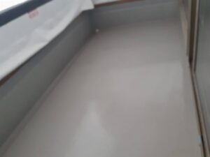 ベランダの防水工事の様子です。 防水工事にも種類がありますが、FRP防水工事をしているところです。 工事完了前に仕上げでトップコートをもう一度塗ります。 職人さんが丁寧に工事してくれてます。![]()