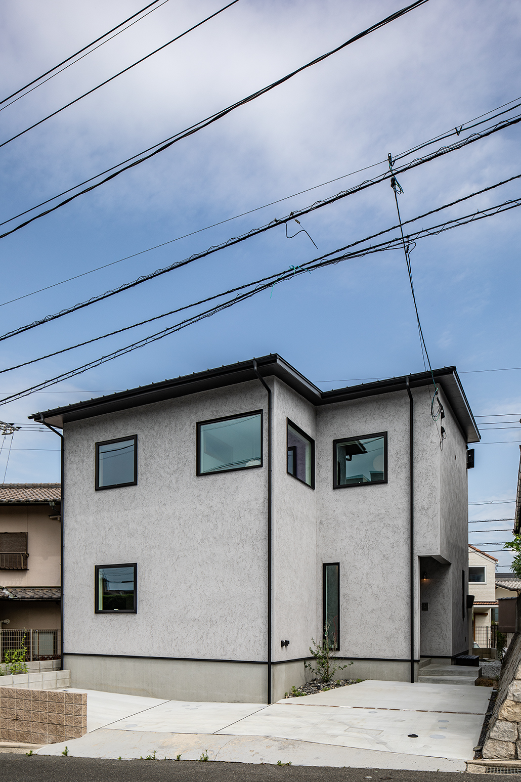 窓の配置や外壁のトーンを整え、街並みにすっとなじみながらも印象に残る佇まいにまとめました。