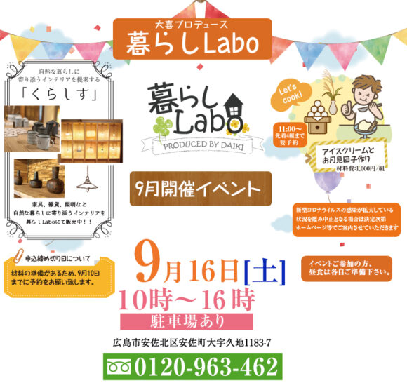 暮らし Labo 2023年9月16日(土)暮らし体験祭開催!!