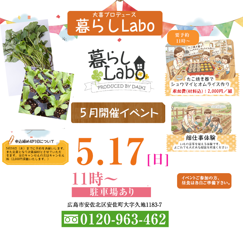 暮らし Labo 2026年5月17日(日)暮らし体験祭開催!!