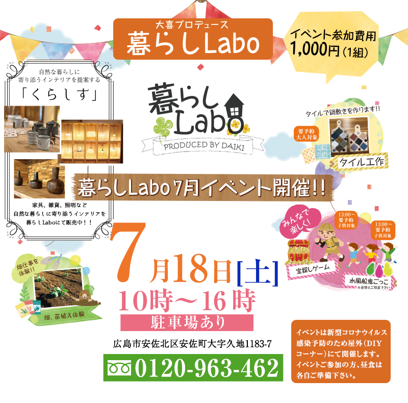 暮らし Labo 7月18日(土)暮らし体験祭開催!!