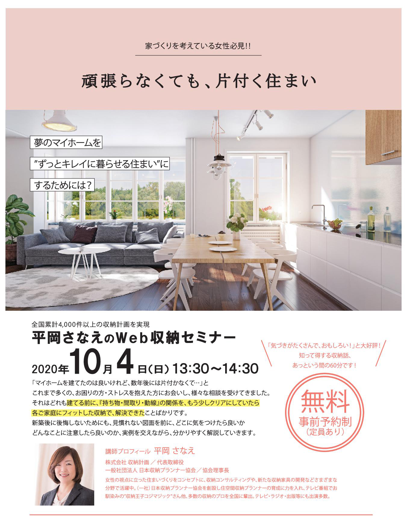 10月4日(日)収納WEBセミナー開催!! 【完全予約制】先着5組