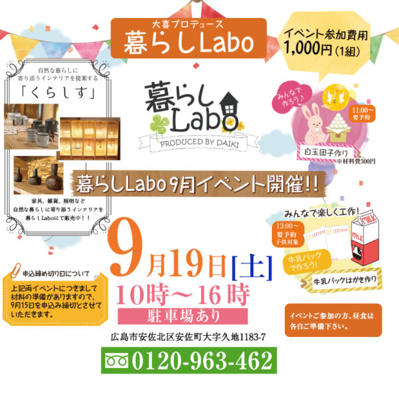 暮らし Labo 9月19日(土)暮らし体験祭開催!!