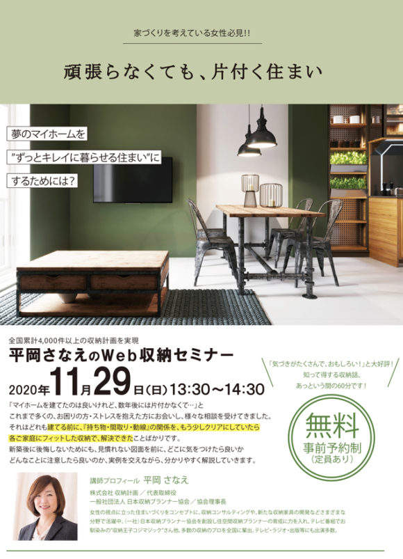 11月29日(日)収納WEBセミナー開催!! 【完全予約制】先着5組