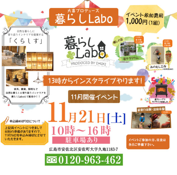 暮らし Labo 11月21日(土)暮らし体験祭開催!!