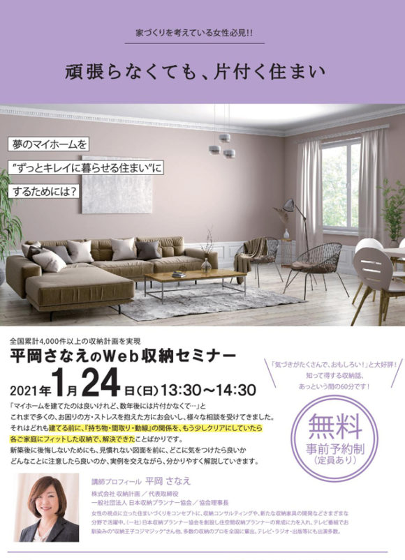 2021年1月24日(日)収納WEBセミナー開催!! 【完全予約制】先着5組