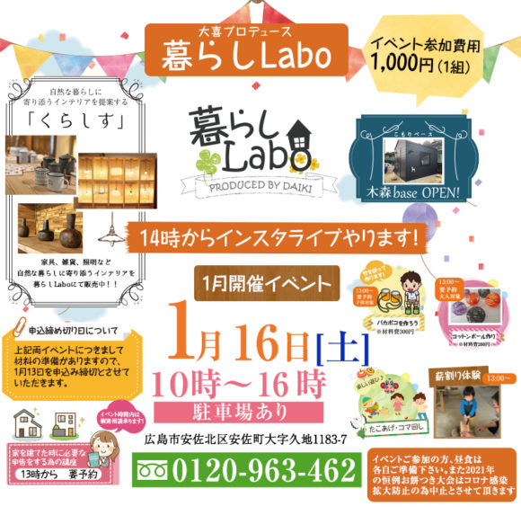 暮らし Labo 2021年1月16日(土)暮らし体験祭開催!!