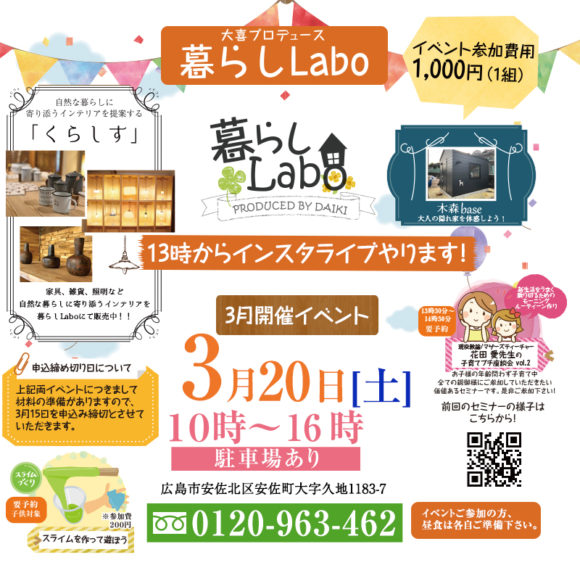 暮らし Labo 2021年3月20日(土)暮らし体験祭開催!!