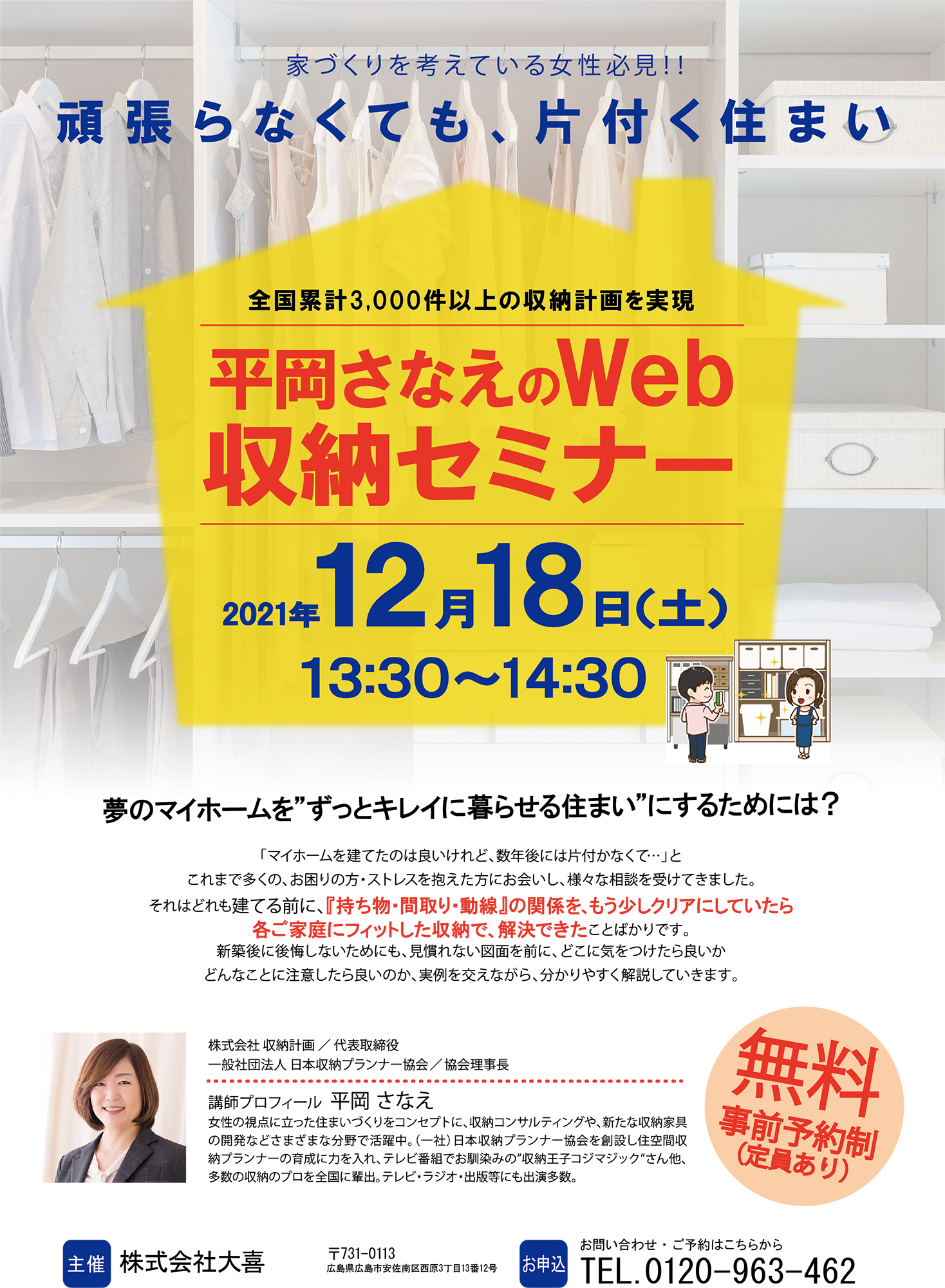 2021年12月18日(土)WEB収納セミナー開催!! 【完全予約制】先着5組