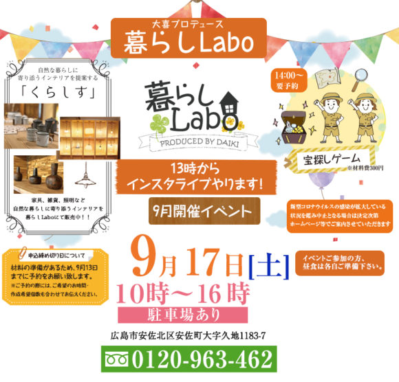 暮らし Labo 2022年9月17日(土)暮らし体験祭開催!!