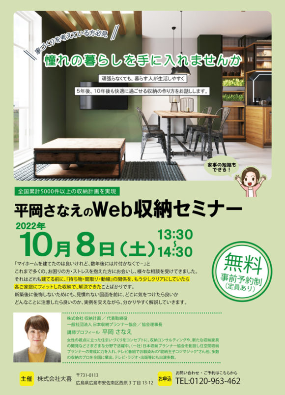 2022年10月8日(土)WEB収納セミナー開催!! 【完全予約制】先着5組