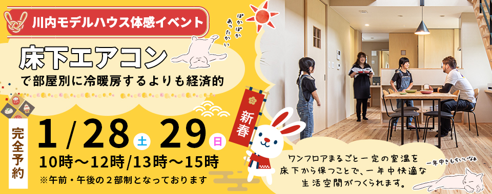 終了 川内モデルハウス体感イベント開催「床下エアコンで一年中快適な生活空間」!! 2023年1月28日(土)29日(日)