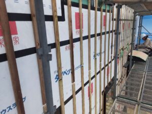 こちらの胴縁によって、壁と外壁の間に通気層を設け