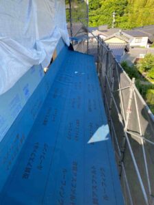 Y様邸上棟時ルーフィングも完了しています! 屋根がかかると見ることはなくなりますが、防水のためにかかせない工程です。
