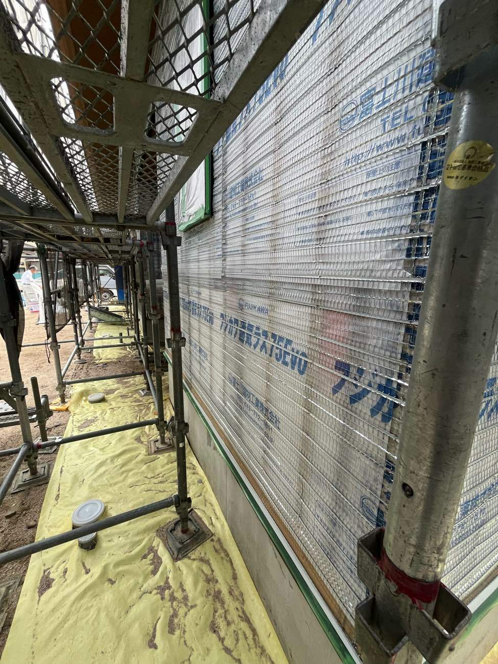 そとん壁の下塗りを進めています。