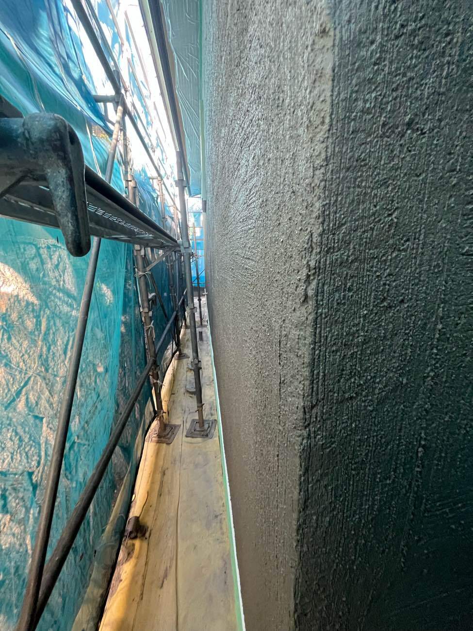 今回の下塗り工程で、いよいよ建物の外観が形になってきました。