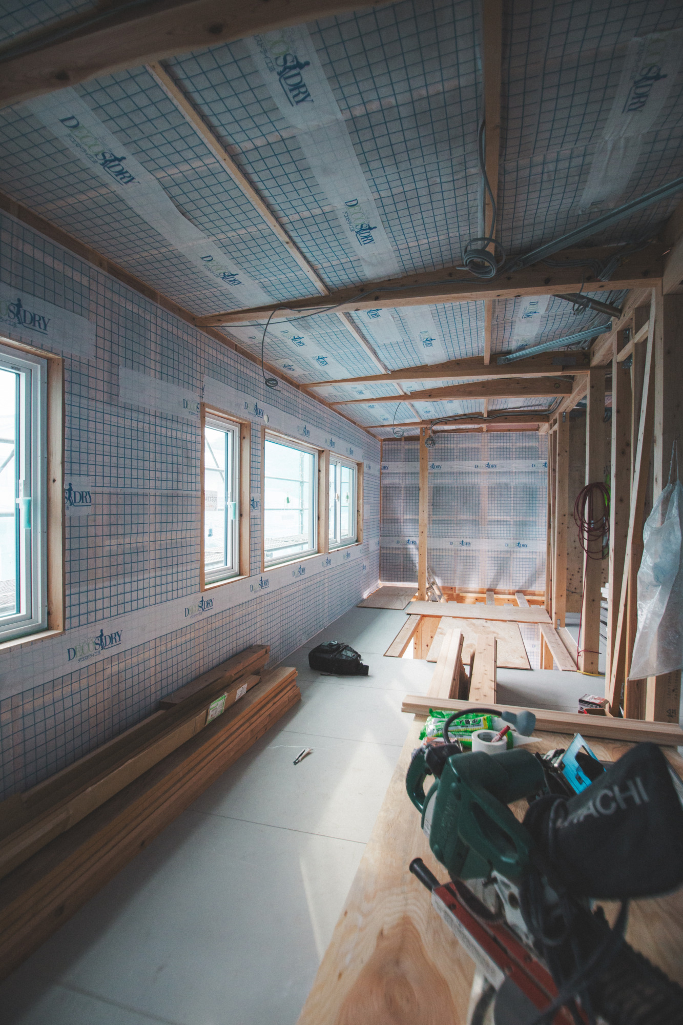 牛田モデルハウスのセルロース施工が完了し