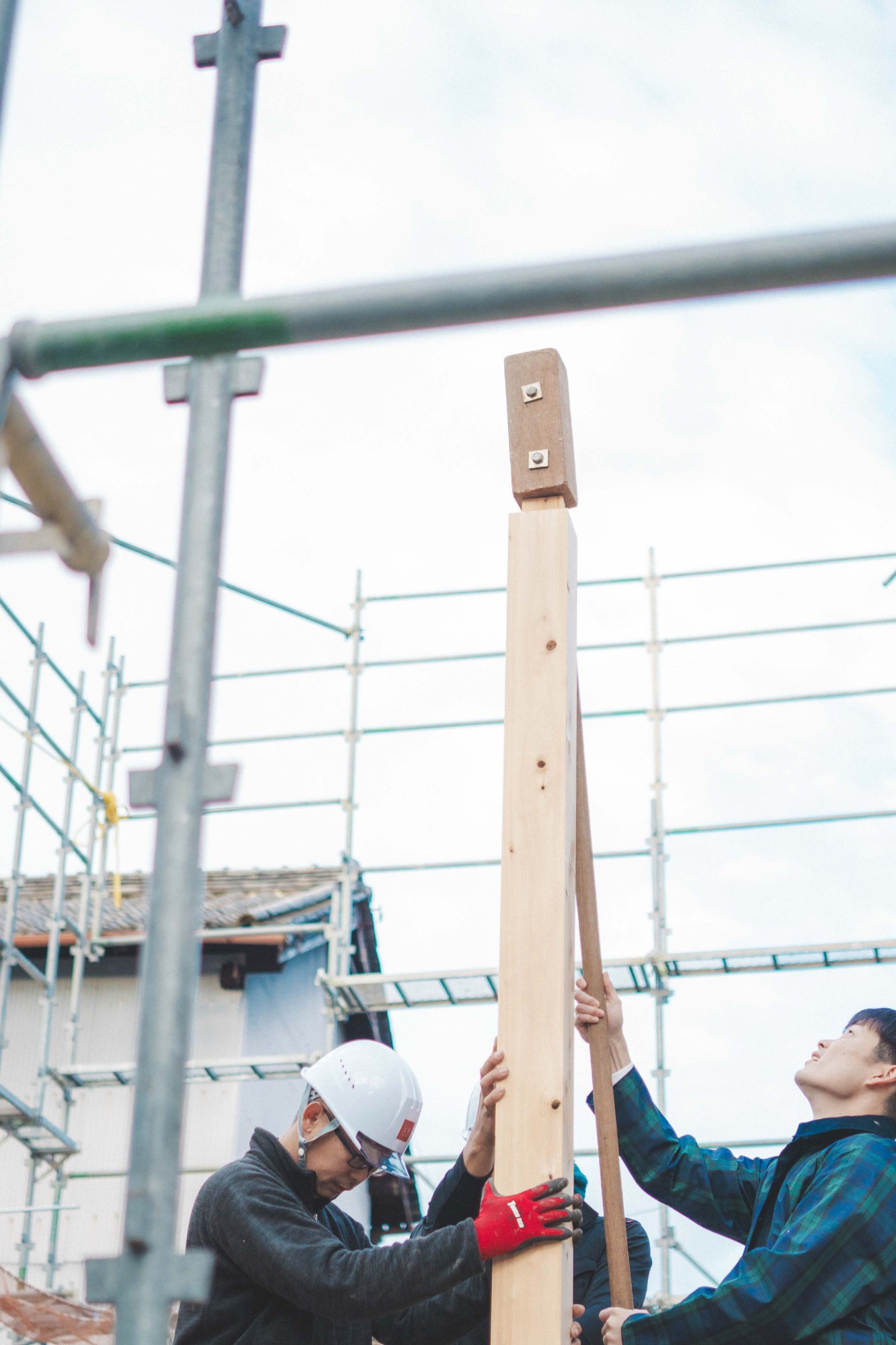 大工たちは、お施主様が温かく見守る中で、慎重かつ丁寧に作業を進めました。柱が一本ずつ立ち上がり、梁が渡され、家の形が目に見えて姿を現すその瞬間は、何度見ても特別な感動があります。