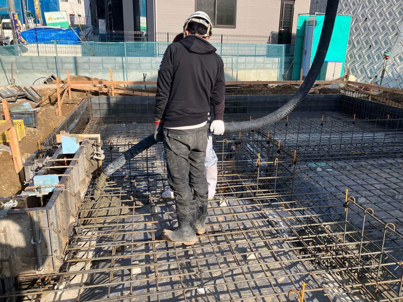本日、K様邸のベタ基礎のコンクリート打設を行いました。
