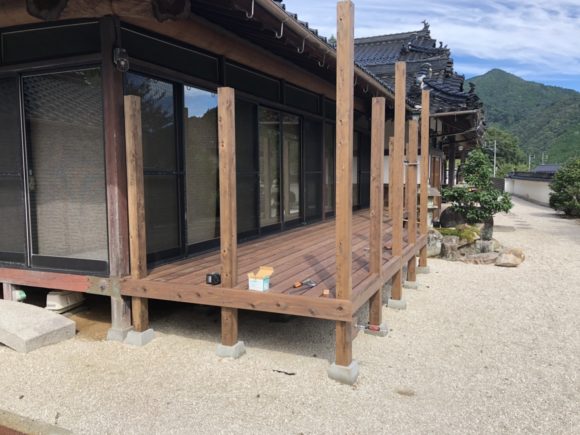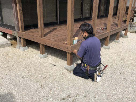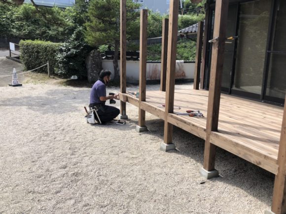 写真は幕板を取り付けているところです!どんどん見た目がウッドデッキらしくなってきました!