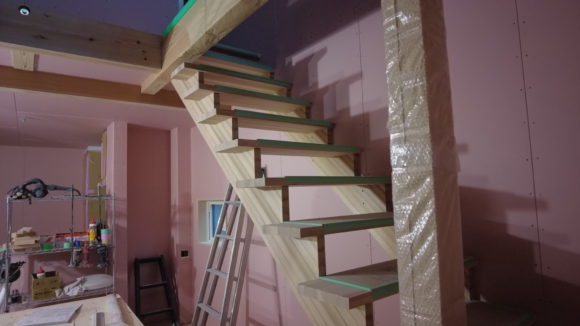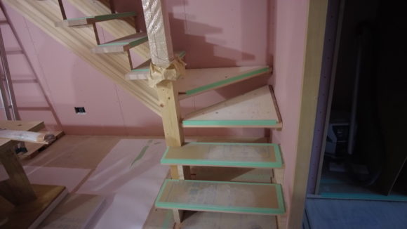 大工さんも細かい部分へこだわりぬいての施工をしてくれており、現場見習い中のわたしとしては階段の納まりについてだけでも、なるほど!!と思わされることが多々ありました。常に勉強ですね!