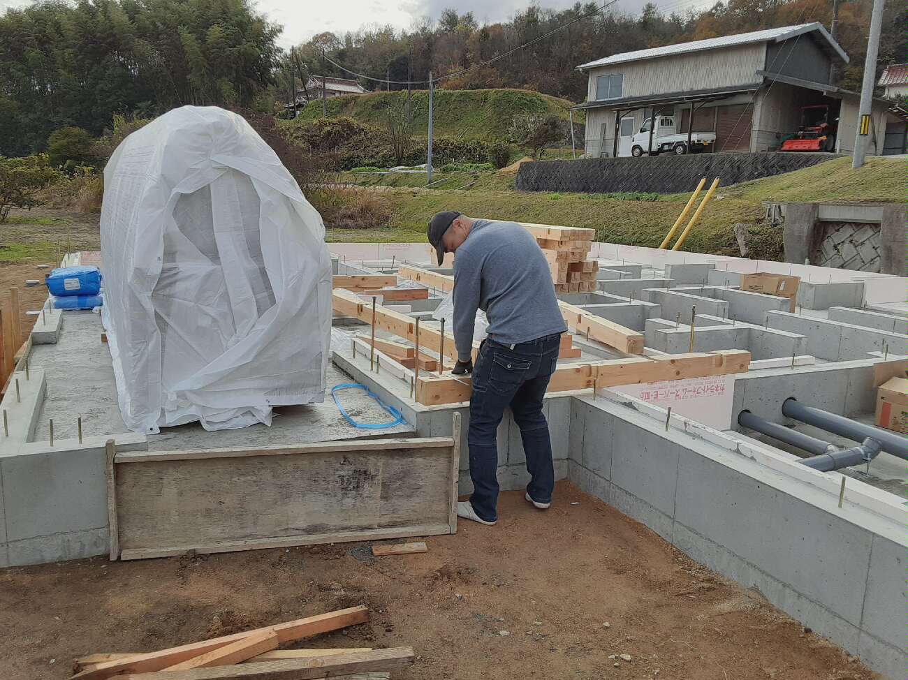 ホーム > ただいま施工中 >【東広島K様邸土台敷き中です。】【広島注文住宅】Vol174 ただいま施工中 EXECUTION 【東広島K様邸土台敷き中です。】【広島注文住宅】Vol174 投稿日:2020.11.28 一覧に戻る 東広島K様邸土台敷き中です。 大きな基礎が完成した後は家の土台を施工します。 強い基礎と強い土台で足元はばっちりです。 これより躯体をくみ上げる上棟になります。こちらのお家は二日かけての上棟! 安全に気を付けて施工してまいります!