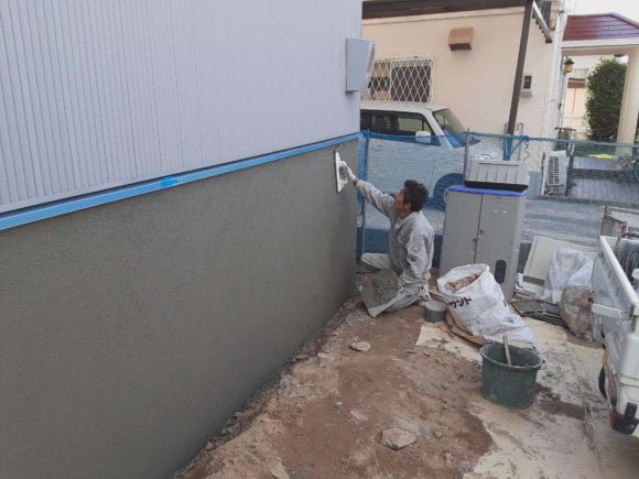 基礎の仕上げでモルタルを施工します。